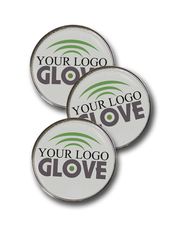 Metal ball markers branded with your logo.  Snap into place using the magnets found on our gloves, hat clips, and golf tools.  Great as an extra to go with one of our other products.